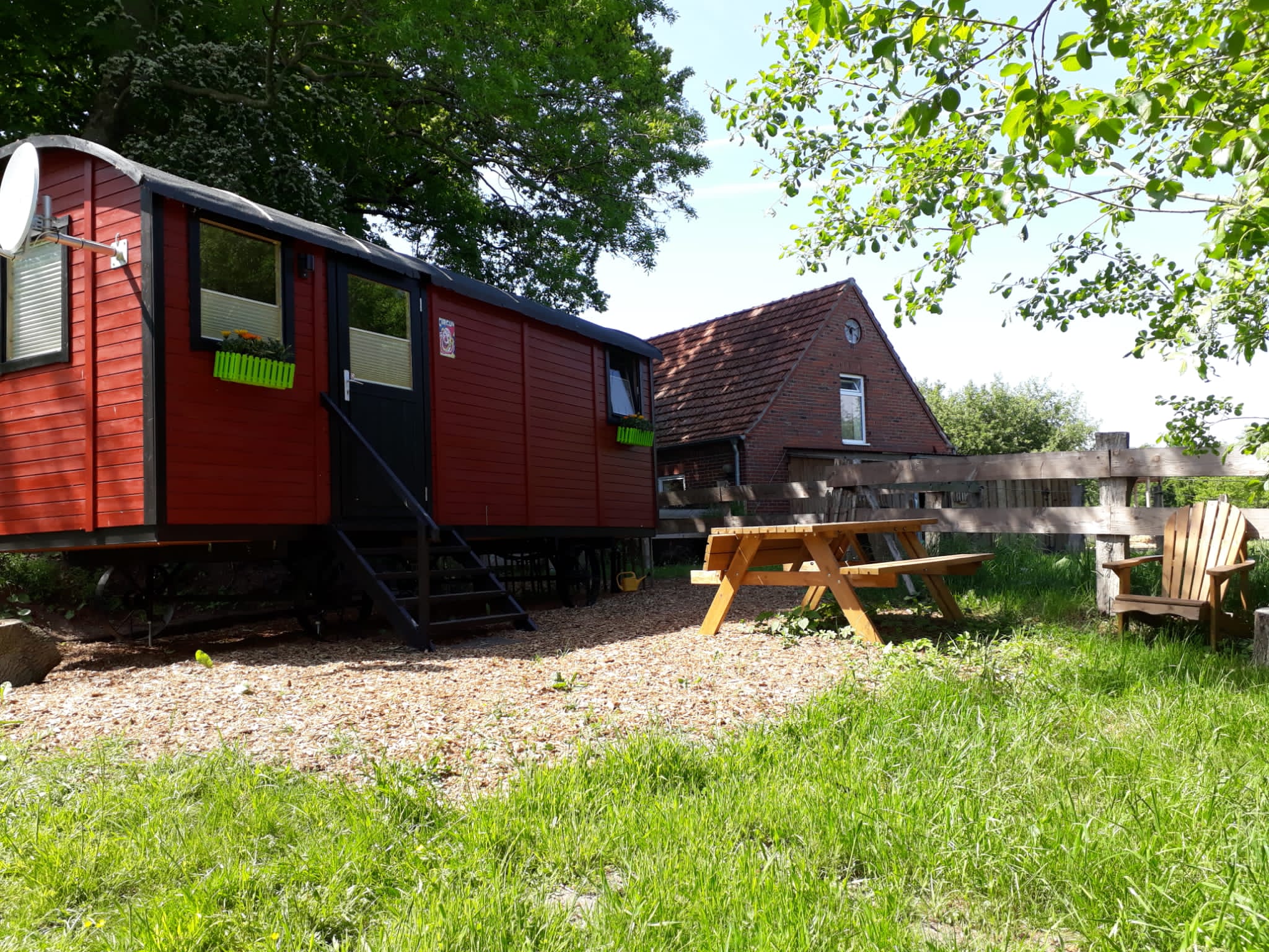 Vollständig eingerichter Zirkuswagen mit kleiner Küche incl. Kochgelegenheit, Bett (1,40m), Badezimmer mit Dusche, WC und Waschbecken. eigener TV, Infrarotheizung. Draussen eigene Sitzecke mit Aussicht auf unsere Pferde und Rehe, Schlafen gehen mit dem Abendgesang der Amseln. Nicht fur Jedermann aber einmalig. Vermietung ab 2 Nächte (Frühstück kann gebucht werden). Geöffnet vom 01.04. bis 30.10.